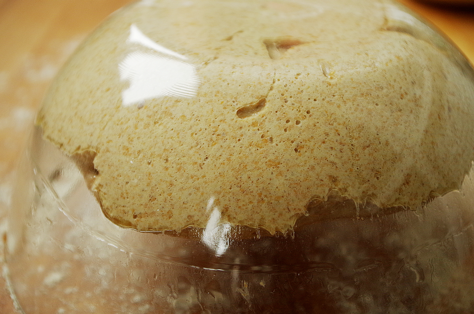 1) Если ставите на ночь, берите для закваски около 5% стартера, то есть, 5 гр. на 100 гр. муки, этого будет достаточно для созревания в течение примерно 10 часов при температуре 23-25 град. Закваска не перебродит сильно, даже если немного опадет. Кроме того, по мере брожения в ней разрушается клейковина и по структуре она становится больше похожа на ржаную.