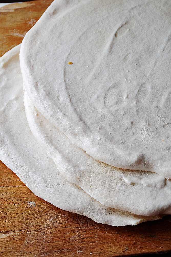 Утром листы пастилы были совсем нелипкими, похожими на обычное безе и легко снимались с силиконовых листов и пергамента.