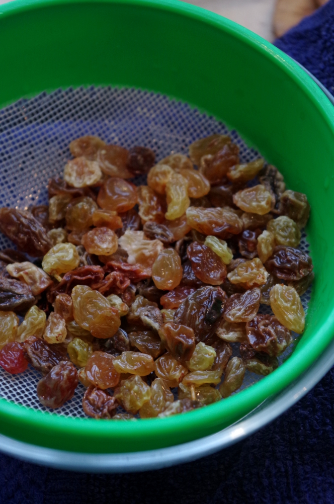 В это время занялась изюмом: залила его кипятком на 15 минут, потом слила воду и оставила остывать и обсыхать.