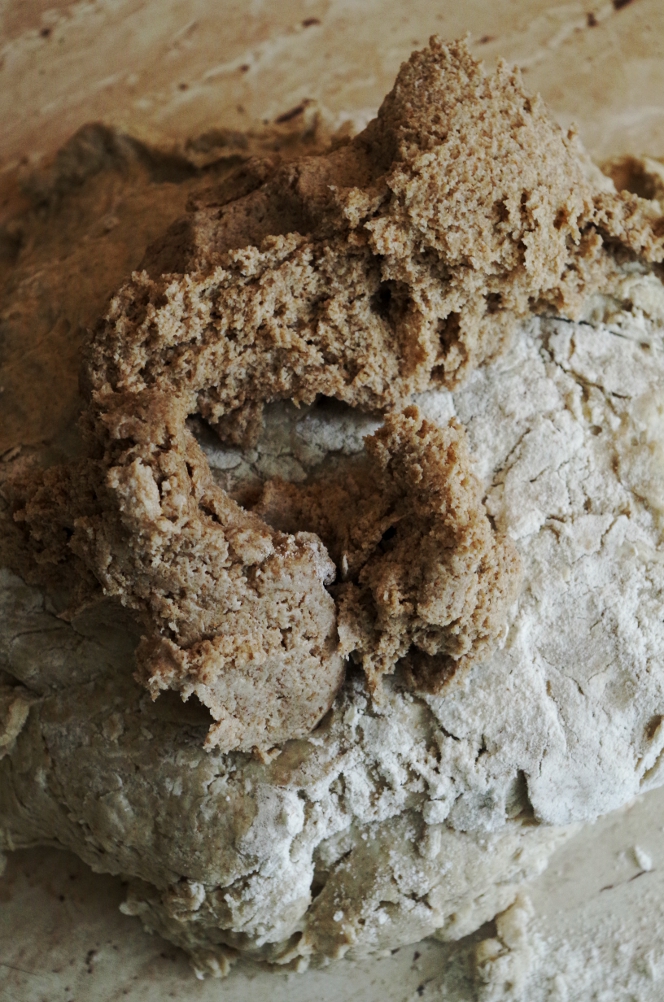 Я растягивала тесто, сворачивала, била о столешницу. Сначала оно рвалось и просто невообразимо липло к рукам и столу. Вот таким оно было.