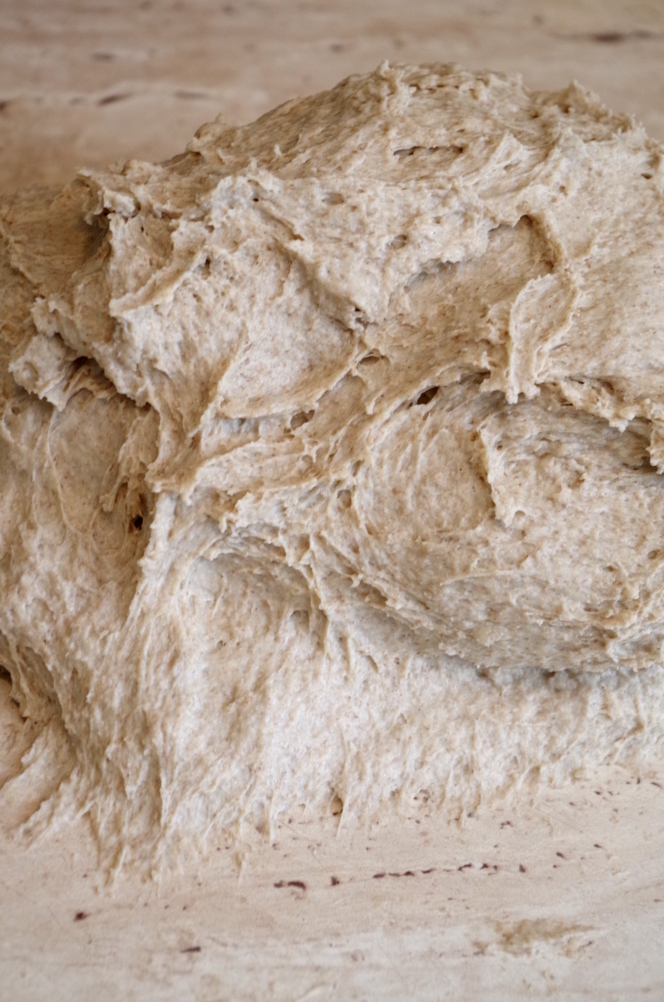 Но уже через 20 минут работы оно стало вот таким приятным и гладким. Все равно немного липким – это из-за ржаной муки – но по сравнению с тем, что на предыдущем фото – небо и земля!