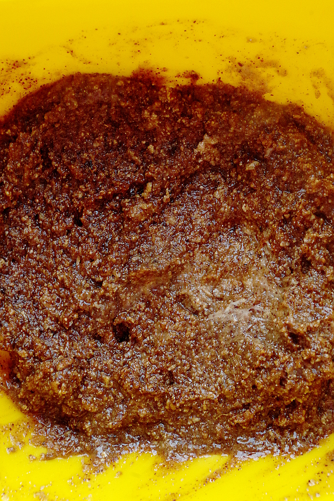 Соединить сухую массу с жидкой. Замесить тесто. Будет липким.