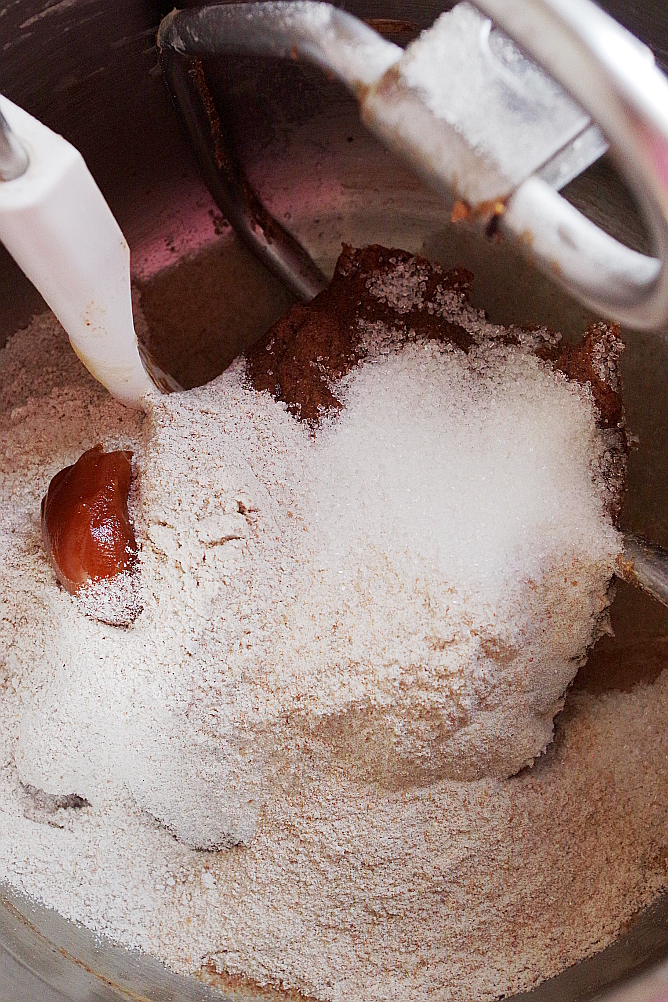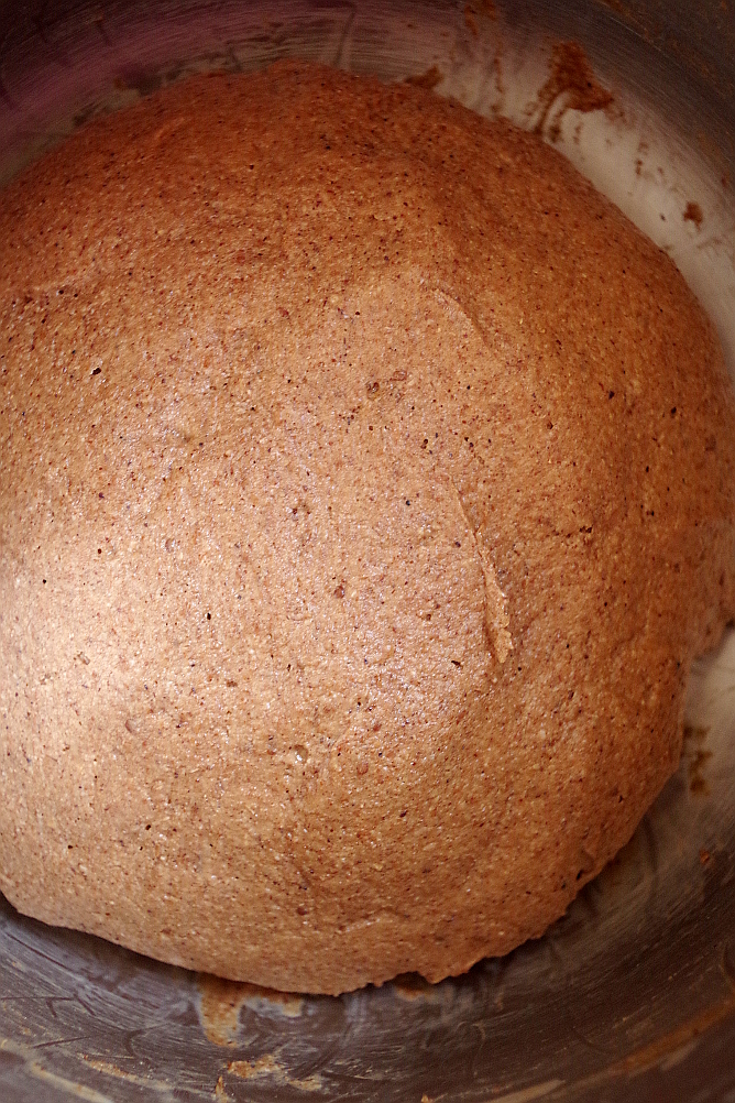 Ржаное тесто замешивается без аутолиза, в дежу добавьте закваску, заварку, муку, воду и остальные ингредиенты. Я замешивала в тестомесе Ankarsrum на второй скорости около 8-9 минут, иногда помогая скребком, пока вся мука не увлажнилась и пока как следует не перемешались все ингредиенты.