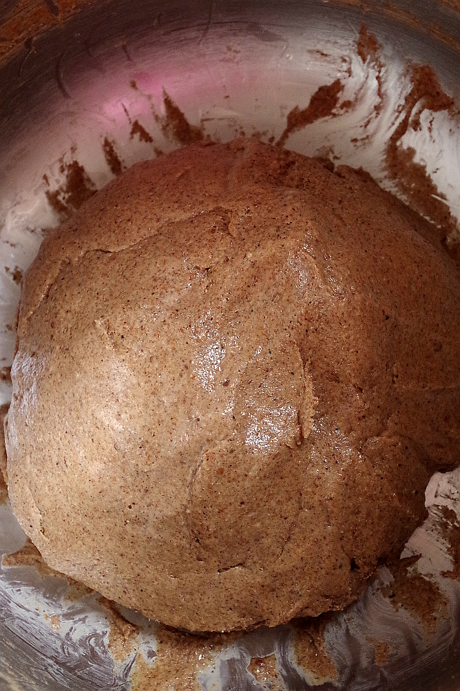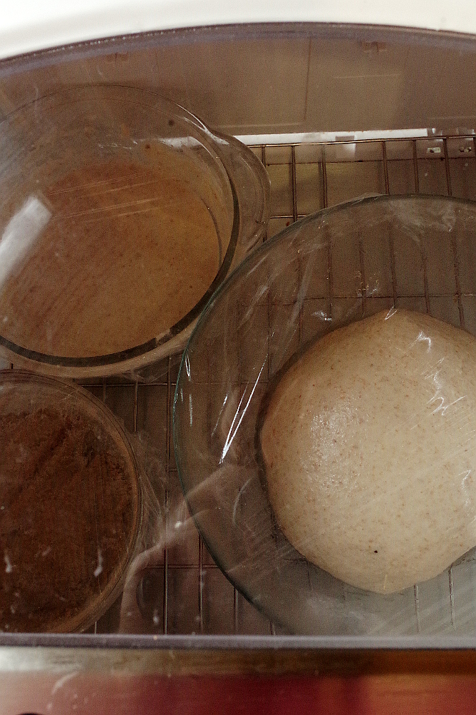 Я оставляла бродить тесто прямо в чаше тестомеса, подобрав его в подобие шара, в расстоечном шкафчике все места были заняты.