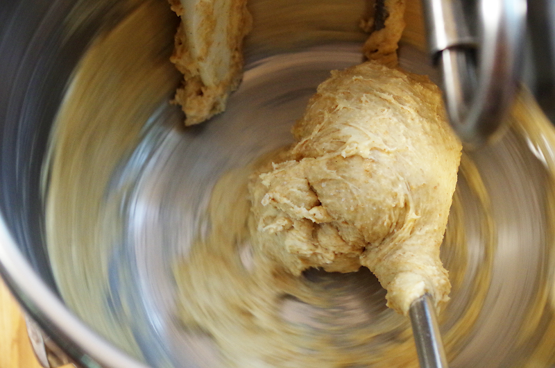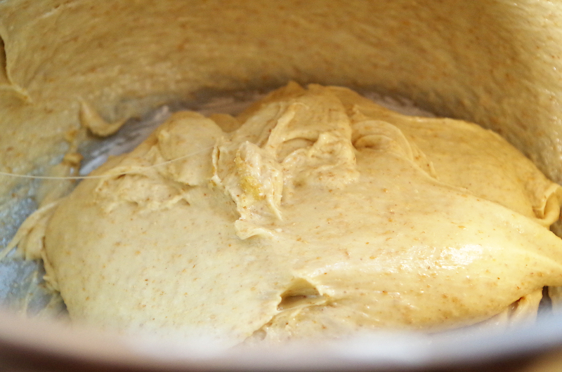 Обратите внимание, в этом тесте, несмотря на его деликатность, используется почти 30% пшеничной цельнозерновой муки! У меня, как всегда, мука свежая, смолотая на домашней мельнице Hawos Queen1