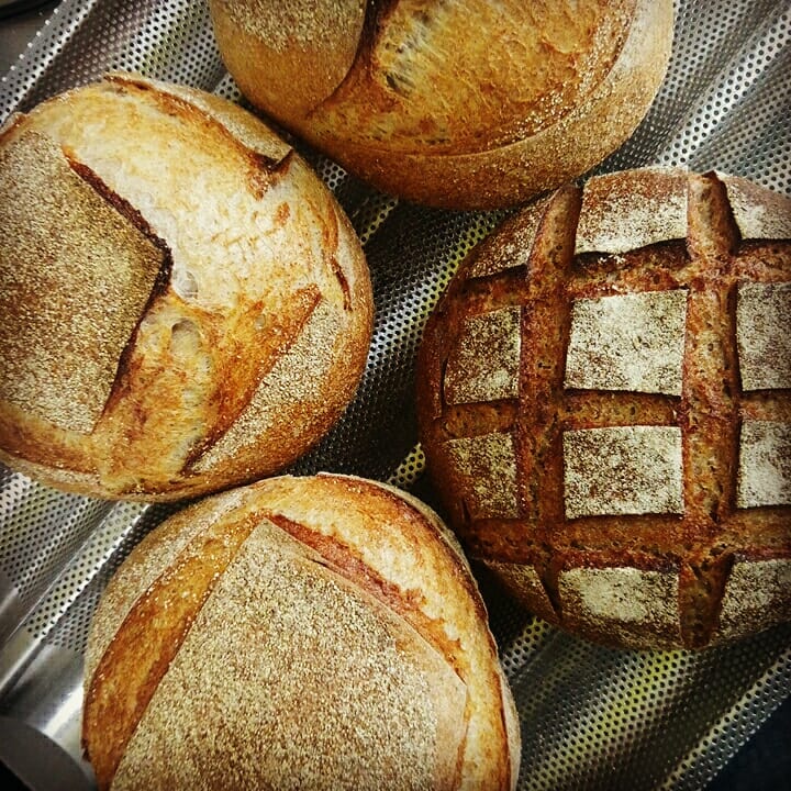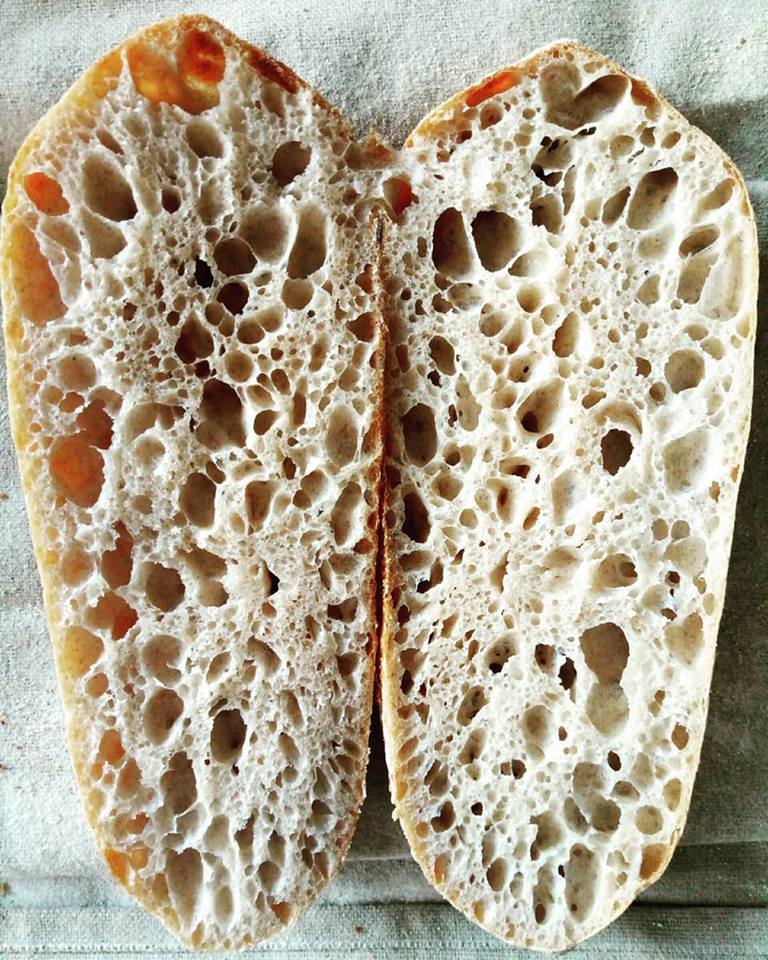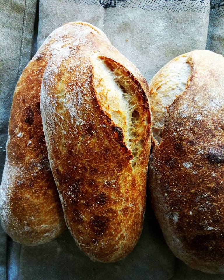 В арсенале у нас была неделя времени, программируемый пароконвектомат Unox, один ярус подовой печи этого же производителя, замечательные профессиональные аксессуары и инструменты от Matfer и два пекаря, не представляющие, что такое закваска и ремесленный хлеб, но прекрасно владеющие искусством производства дрожжевых булок и слоек. В нашу задачу входило научить пекарей нескольким видам хлеба (деревенский, гречневый, цельнозерновой пшеничный, бриошь, багеты на закваске, чабатта, тартин, питы, ржаной, французская булка и др.) И в который раз я с удивлением обнаружила, что пекари, которые годами были заняты на производстве, не умеют работать руками, не могут банально замесить тесто, не чувствуют его ни во время замеса, ни во время формовки. Изначально у нас был четкий график выпечки, который пришлось на ходу корректировать, потому что важнее оказалась ТЕХНОЛОГИЯ, ведь рецепты – дело наживное и, если знаешь базу, сможешь испечь любой хлеб.
