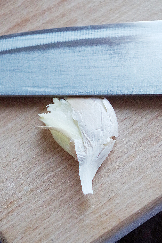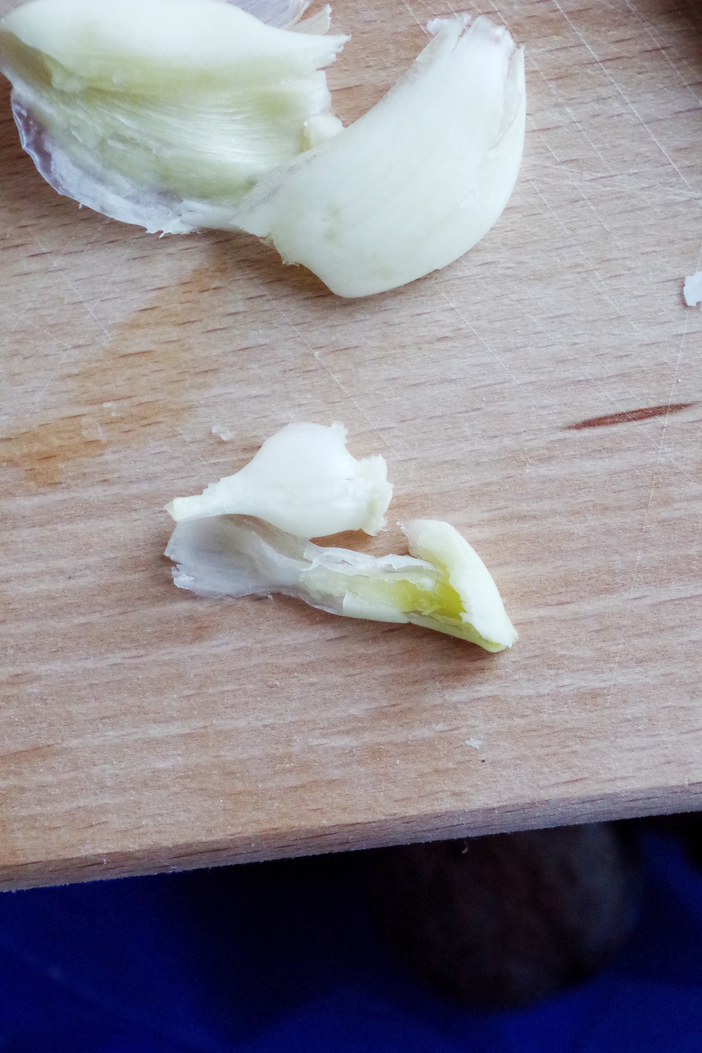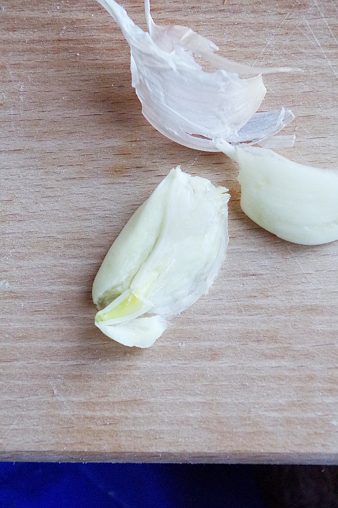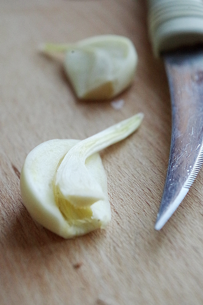 Для чего это делать? Чтобы потом запах чеснока не донимал вас весь оставшийся день, это именно серединка обладает таким стойким навязчивым чесночным духом.