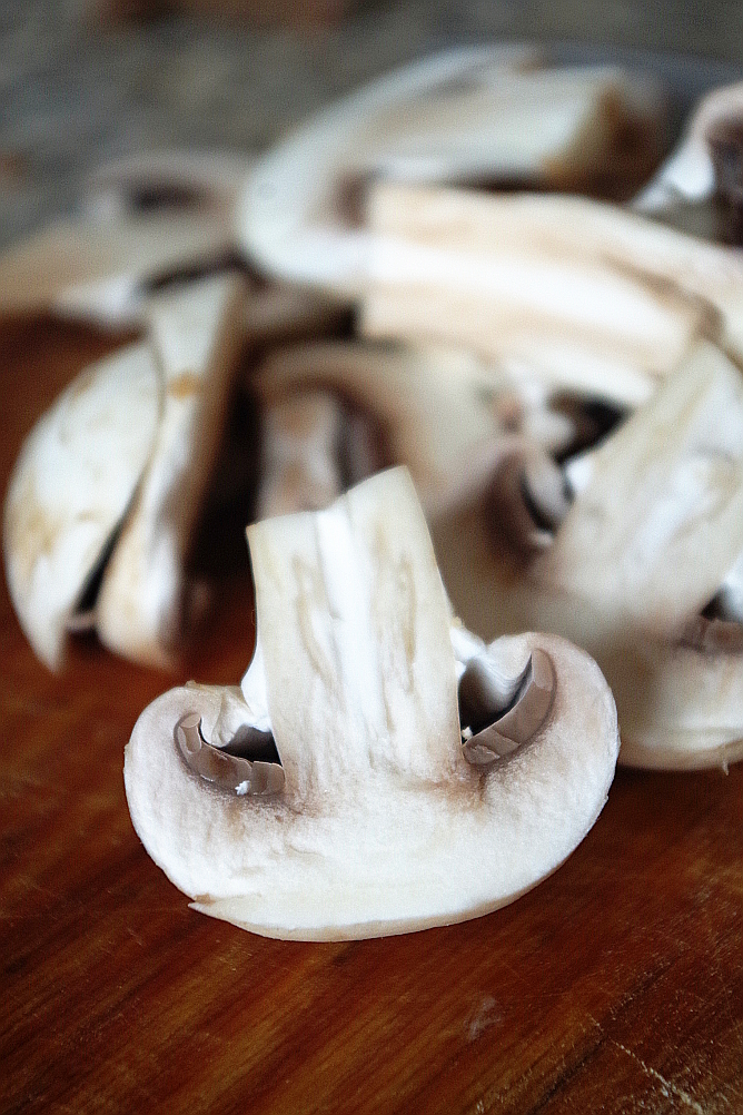 Грибы вымыла и нарезала умеренно тонкими пластинками.