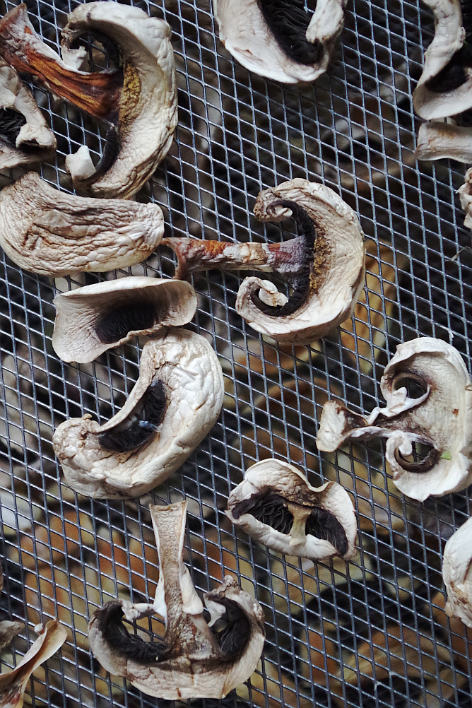 Все началось с грибов. Осенью у нас был неурожай: ни опят, ни польских, ни белых, ни лисичек, ни подберезовиков с подосиновиками, ни маслят — ни-че-го! И тут среди зимы так стало обидно, так обидно, что пошла магазин, купила полкило портобелло и решила насушить. Как всегда, по ходу пъессы, на лотки дегидратора попали стебли сельдерея, лук перьями, морковка кружочками и дольки чеснока. А потому получилось у меня не просто насушить грибов, а сделать отличную овощную приправу или сухой овощной будьон, домашний :)