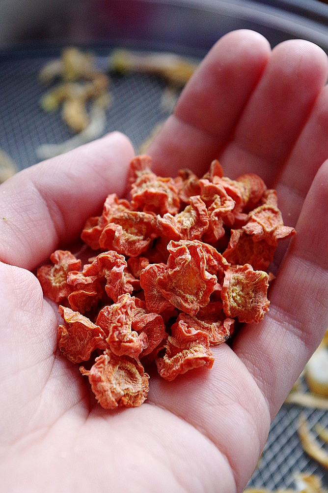 Сушила около 12 часов при температуре 60 градусов. Вот овощи в процессе сушки.