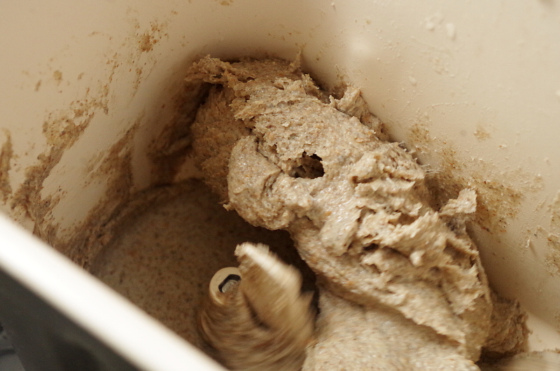 Замес ржаного теста в хлебопечке просто так не проходит, оно не собирается в шар, не тянется, не развивает клейковину, оно собирается вязким липким комом и лопатки хлебопечки вертятся внутри этого кома, проделывая в нем брешь, и все.