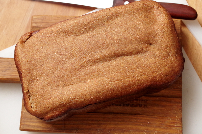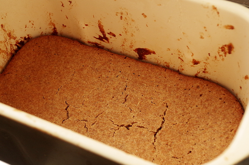 Нууу, что вам сказать :) Тут без слов все понятно: мякиш разрыхлен слабо, низ хлеба отслоился, на вкус он мягко говоря, не очень, как мука, как смесь муки и воды. Мне кажется, гораздо лучше печь быстрый ржаной хлеб просто на соде, как Ирландский содовый хлеб, будет намного вкуснее, но на дрожжах – не стоит. Признаться честно, я не ожидала, что получится так нехорошо, и даже на видео снимала весь процесс, чтоб вам показать, но итоговый вердикт – не повторяйте это! Если хотите быстрого хлеба на дрожжах и с ржаной мукой из хлебопечки – возьмите не больше 50% ржаной, а остальное замените пшеничной цельнозеновой, разрыхление и вкус будут лучше. И я бы еще увеличила количество соли до 2,5% (это 12-13 гр.) Можете еще поискать добавки в виде сухих подкислителей типа аграма, но, опять-таки, какой в этом смысл? Тут или сода/разыхлитель, или закваска Sekowa, которая позволит получать вам хороший быстрый ржаной хлеб в хлебопечке без заморочек. Думаю, об этом стоит написать отдельный материал ;)