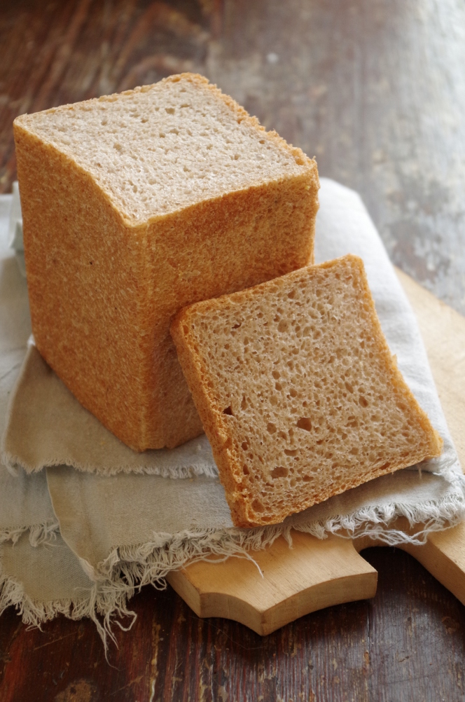 А вот, кстати, в качестве бонуса испекла этот хлеб в прямоугольной фороме с крышкой, формовала плотно, намеренно выдавливая пузыри. Справа результат "небрежной формовки", я, кажется, даже надрезов на хлебе не стала делать из-за этого, плюс на расстойке передержала. Но результат очень позабавил.