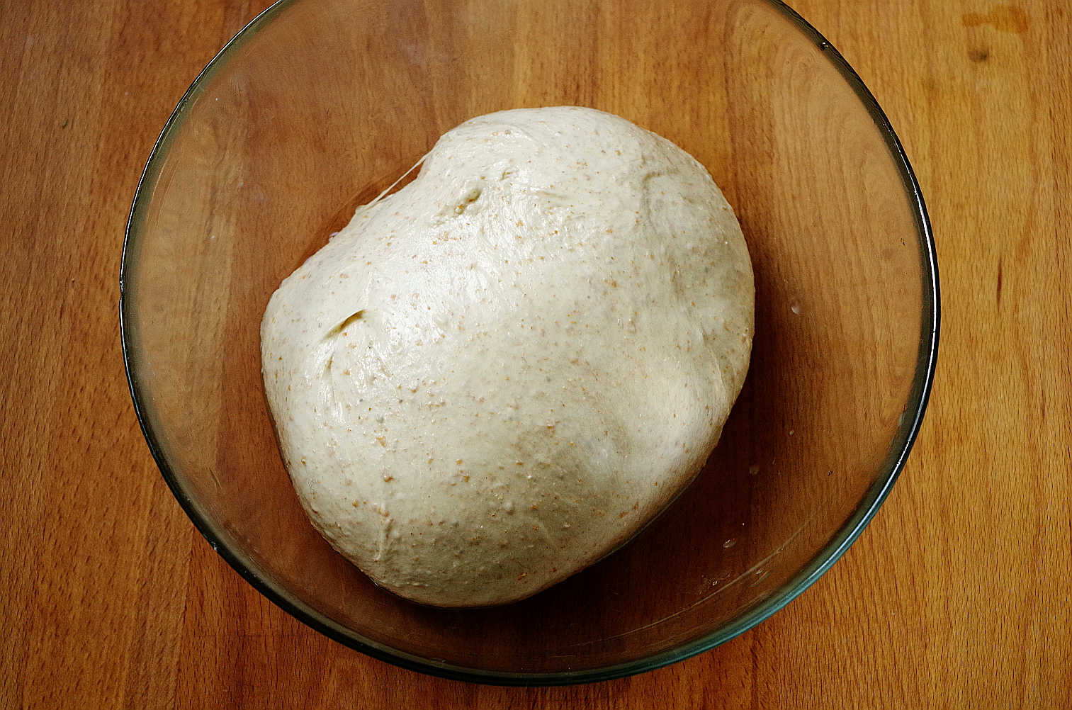 - Тесто сложите плотным шаром и положите в миску, смазанную растительным маслом.