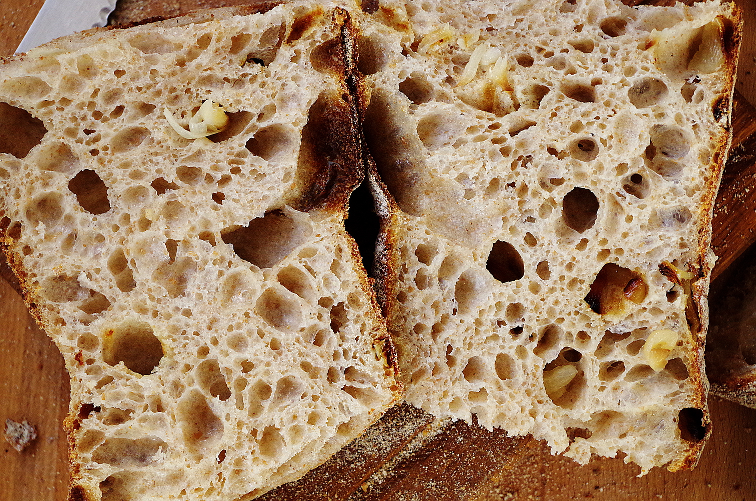 - Готовый хлеб остудите на решетке хотя бы до теплого и разрежьте! Если все сделали правильно, то вас ждет пористая, невероятно ароматная чабатта с вкраплениями сладкого карамелизированного лука.