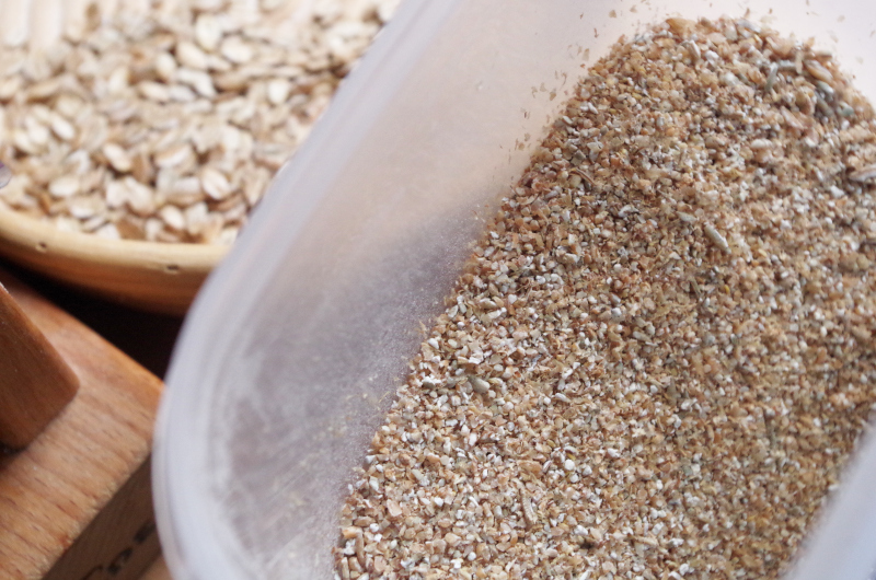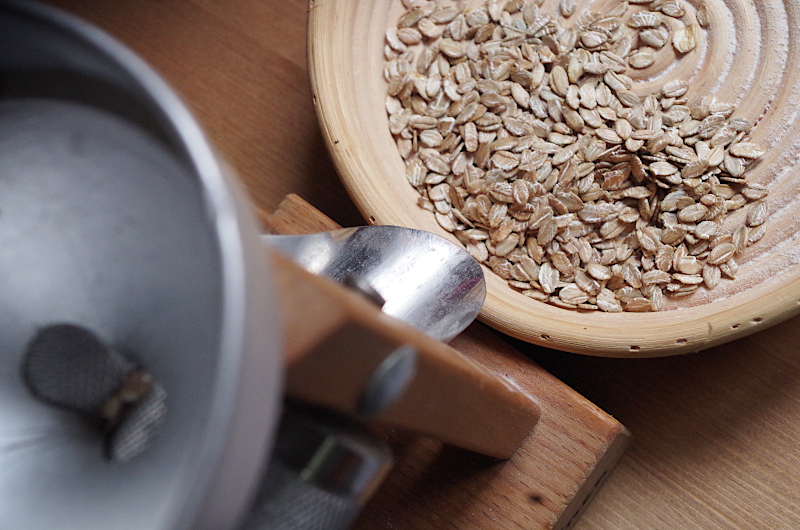 "100 гр. ржаных хлопьев или мелкой крупы;