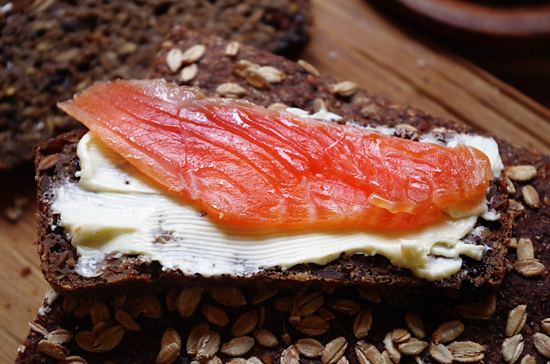 Дайте хлебу отлежаться часов 8-10 и тогда уже дегустируйте! Если вечером поставить закваску и сделать заготовки, утром можно начать возиться с тестом, испечь к вечеру, а уже следующим утром подать на стол с маслом и рыбой.