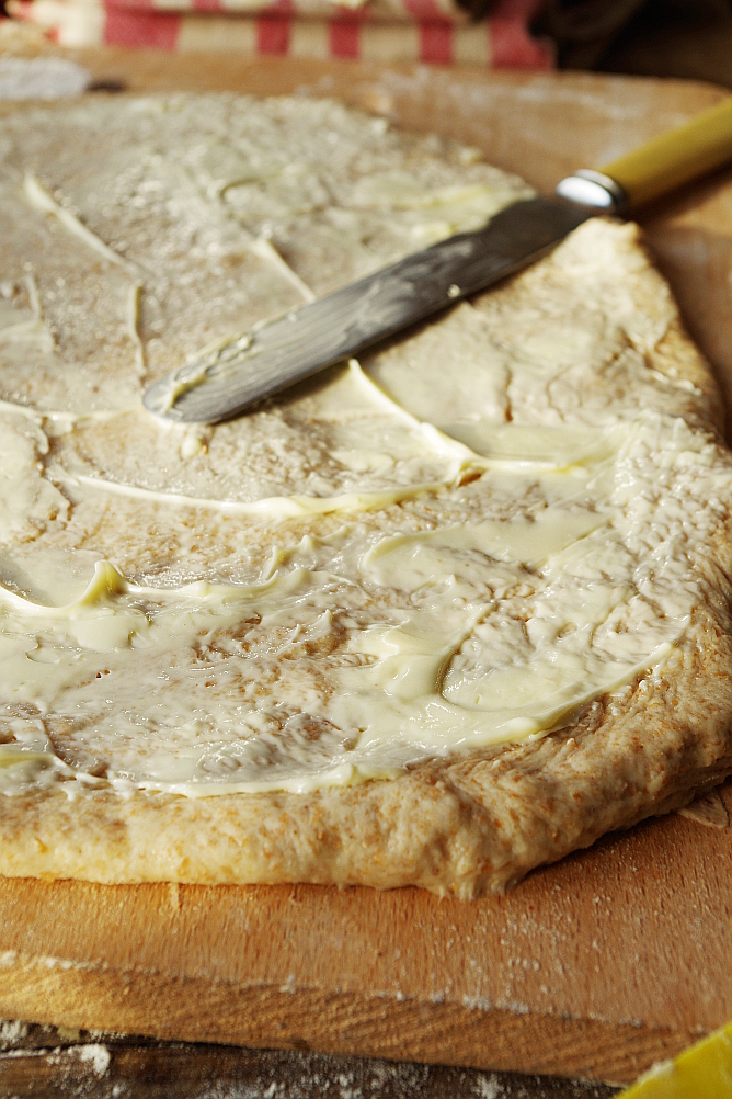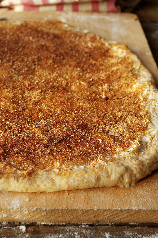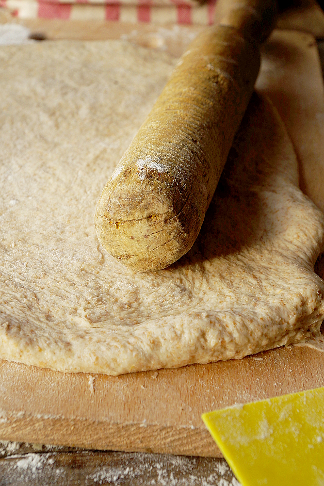 Из всей порции теста катать рулет с корицей было не удобно, поэтому я разделила тесто на две части, каждую подкатала и оставила отдохнуть минут 10.