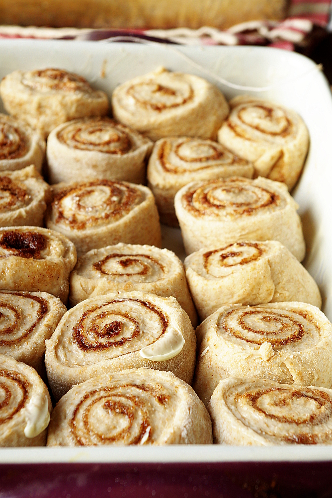 Вкусная особенность этих булок в том, что сливочное масло в процессе выпечки тает и пропитывает тесто, а на дне формы образуется вкуснейший сладкий сливочно-коричный сироп. Исчезают эти чудесные булочки моментально и совершенно незаметно, я надеюсь, и для боков тоже, ведь, вроде в них и мука цельнозерновая, и масла не так чтоб много, как, к примеру, в куличах. Но все равно после слов про сладкий сливочный сироп самой стало не по себе)))