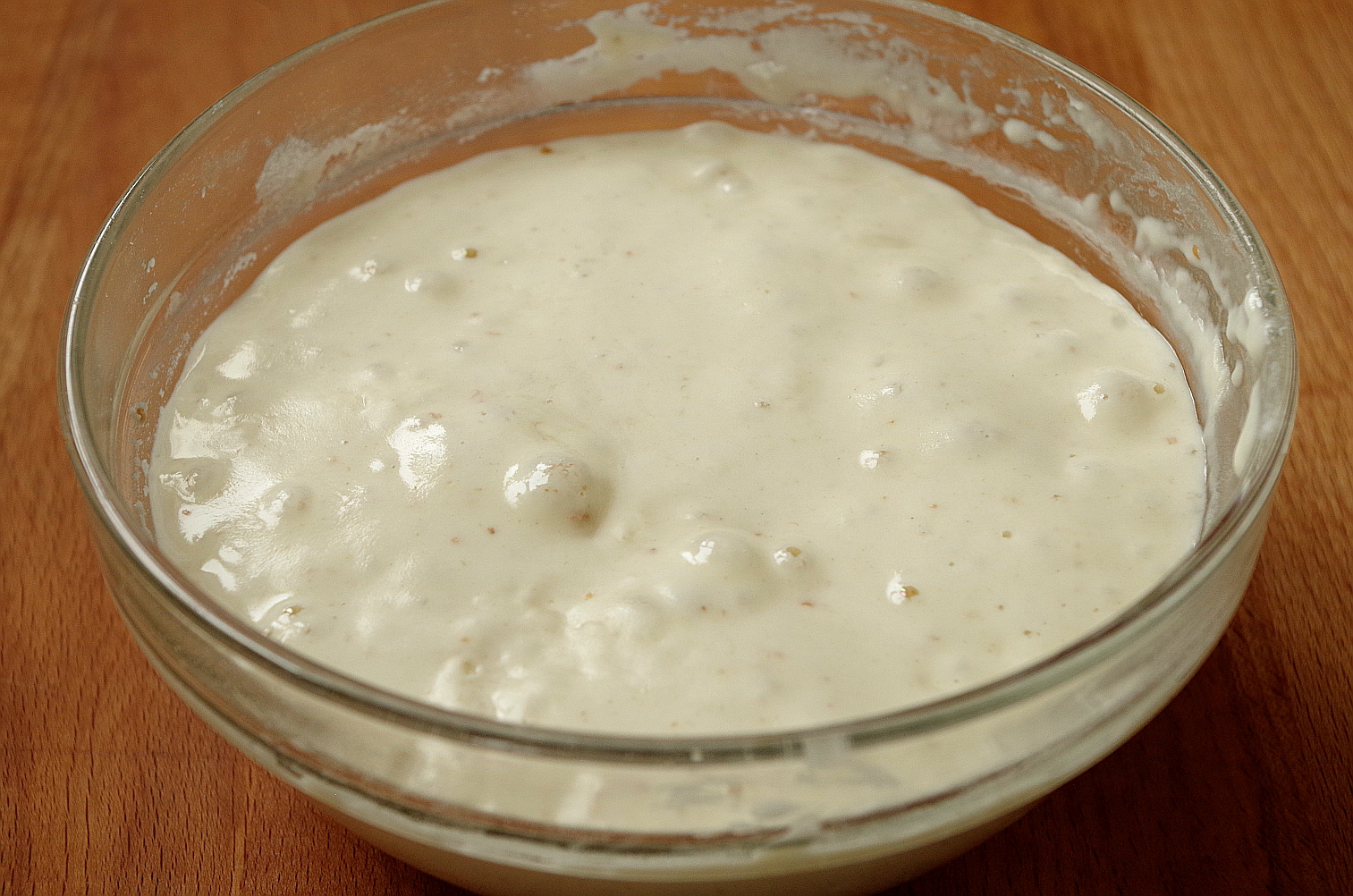 Подошедшее тесто заметно увеличится в объеме и, если постучать по донышку емкости, будет звучать звонко и пусто одновременно.