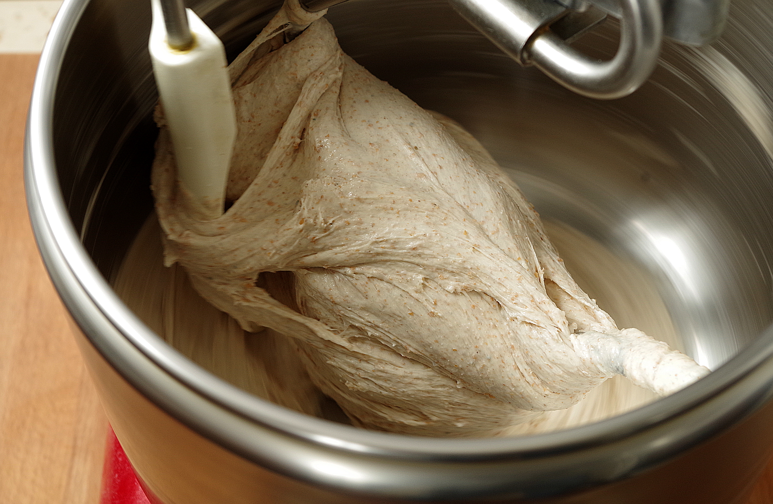 Замес - до идеального состояния, чтобы все, что размазалось по стенкам, собралось, чтоб тесто стало шелковым, без разрывов и неровностей. Сколько именно месить - вопрос относительный и очень зависит от муки, которую вы используете, с одной тесто будет готово через 15 минут, для другой потребуется чуть ли не вдвое больше времени (в Анкаршруме на второй скорости, например).