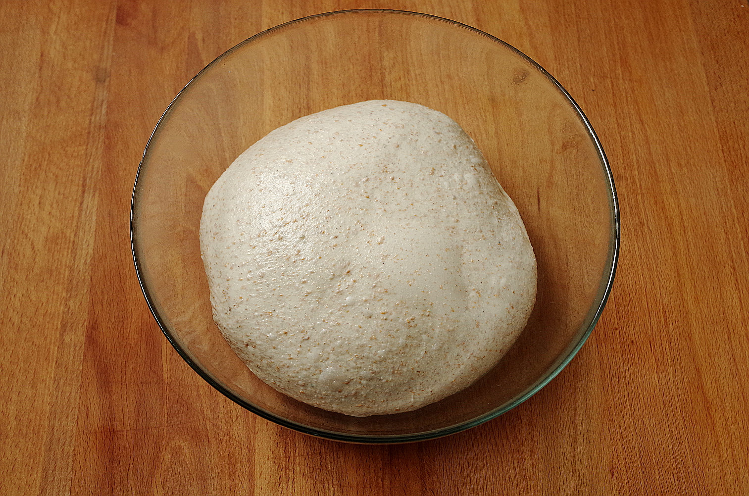 Окончив замес, достаньте тесто, туго сверните в шар и уложите в емкость, смазанную растительным маслом. Желательно, чтоб миска или контейнер имели прозрачные стенки, чтоб сквозь них было видно, как разрыхляется тесто.