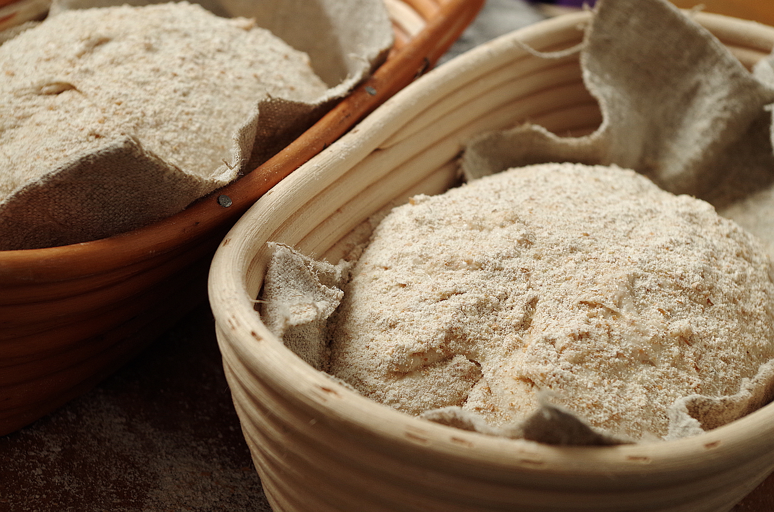 Сфорумуйте плотные заготовки уложите расстаиваться в корзинки, застеленные тканью, швом вверх. Формовка тут имеет большое значение, потому что, если сформуете слабо, тесто прилипнет к ткани и поползет, как только вы выложите его на лопату, про надрезы уже и говорить не приходится. Но как именно это делается, на словах не объяснить, это может прийти только с практикой, поэтому смотрите видео, ходите на мастер-классы, наблюдайте за тестом, осознавайте свой опыт, это то, что сначала почувствуют и научатся делать ваши руки, а уже потом это заметят ваши глаза. Как только заканчиваю с формовкой, сразу же включаю духовку на максимум, вместе с шамотным камнем и колпаком от Emile Henry. Жаль только, что выше 240 градсов (это если крулгым термометром измерять) она не греет!