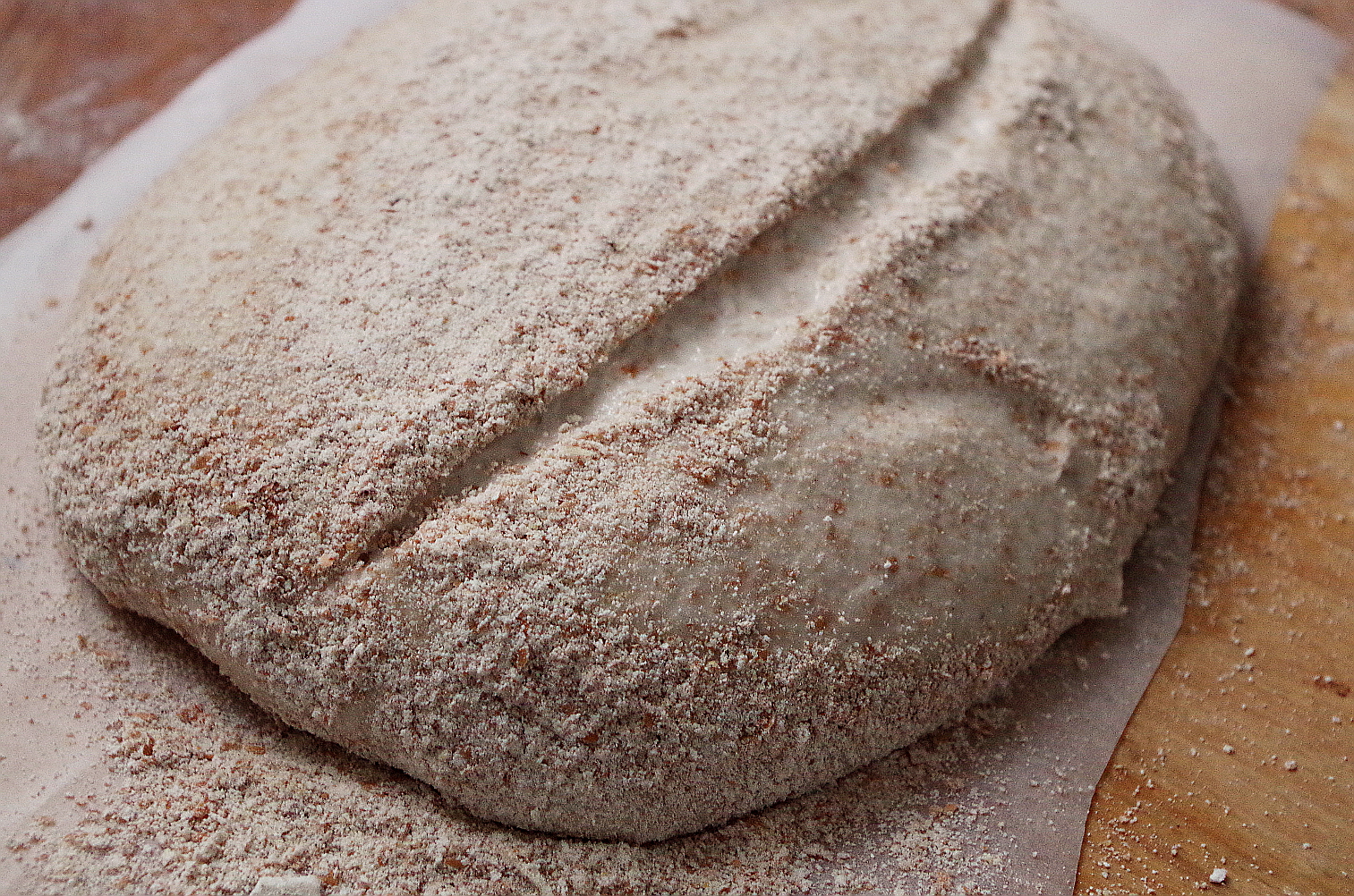 Сложите плотно и уложите бродить дальше. Повторюсь, такое складывание нужно провести два раза в первые 1-1,5 часа брожения, после чего не трогать тесто. Брожение после складывания длится около 2,5-3 часов при температуре 22-23 градуса.