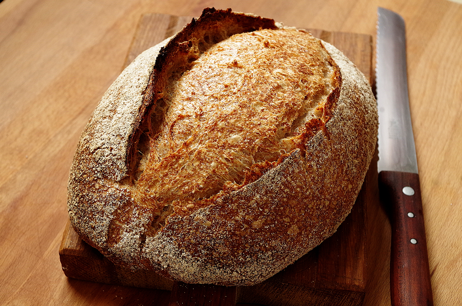 Здравствуйте, друзья! Хочу вас познакомить с этим хлебом - Country French Bread по мотивам известного рецепта Тома Леонарда. Я этот хлеб пеку всю зиму и сначала его пропорции мало чем отличались от оригинальных, но постепенно я адаптировала его под себя, немного увеличив процент закваски, чтобы ускорить брожение теста, и также увеличив процент воды. Изначально тесто для этого хлеба делается довольно плотным влажностью 63%, я же, работа я с ним, из раза в раз подливала воды и вот сначала дошла до 85%, этот вариант вошел в программу недавних московских мастер-классов, и вот сейчас в этом хлебе на фото 90% воды. Но! Хочу сразу оговориться, что начинайте печь этот хлеб с меньшим количеством влаги, начните с 75%, и потом по ходу замеса, если чувствуете необходимость, доливайте. Во влажном тесте, как мы не раз уже обсуждали на мк и я тут писала, большое значение имеет мука и ее свойства. Несмотря на то, что на пачках пишут одинаковые показатели белка, жиров и углеводов, по свойствам мука может сильно отличаться, быть сильнее или слабее, более или менее влагоемкой, давать прочное тесто и различную структуру мякиша и пор, и это все становится понятно только на практике. В сегодняшнем хлебе я использовала новую муку, которая смогла взять 90% влаги, но, работая с обычной, привычной мне мукой, я не увеличиваю процент воды больше 80.