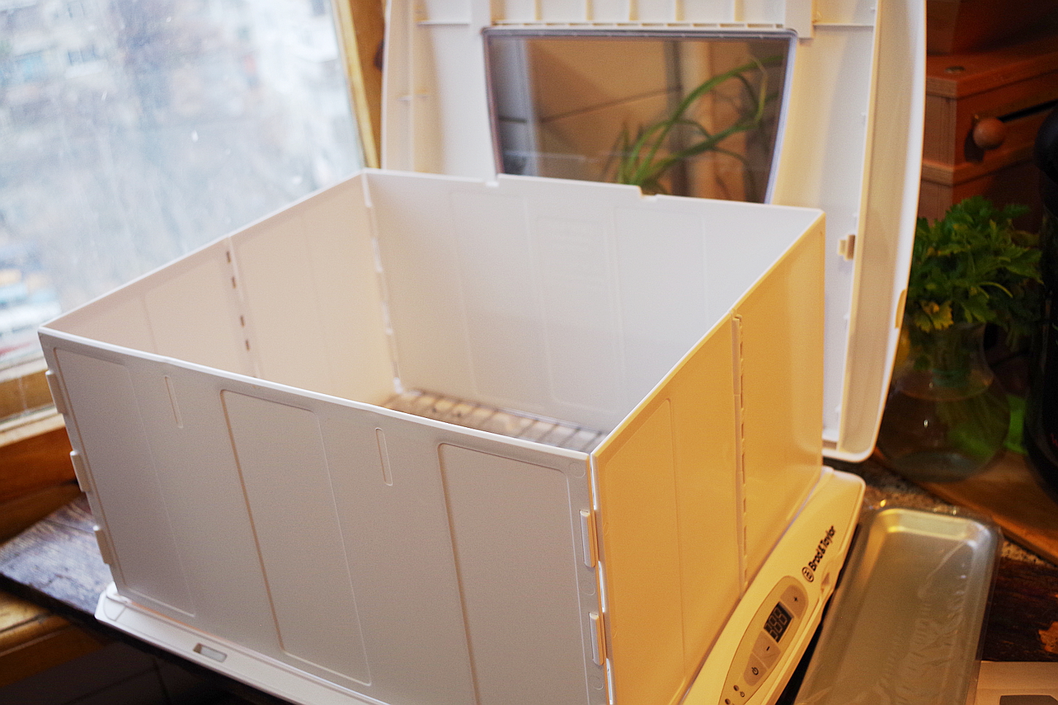 Я в полном восторге от этого девайса и теперь каждый день достаю его и раскладываю, ведь в нем можно не только закваски и тесто выбраживать, а делать йогурт, сметану, сквашивать молоко для творога, плавить шоколад, размягчать мед и сливочное масло, согревать пряничное тесто из холодильника и холодные фрукты, только что принесенные с морозной улицы, чтоб поскорее угостить детей :)
