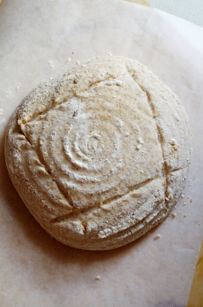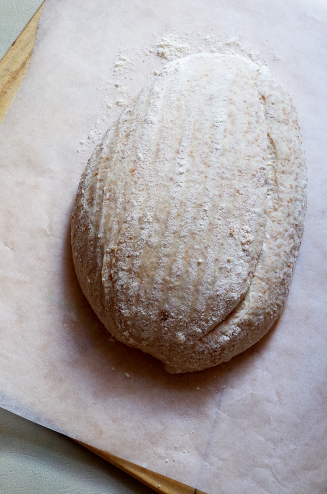 Формуем круглую или овальную заготовки (в зависимости от того, какие у вас корзинки) и укладываем на расстойку. Расстойка около 1,5-2 часов. Минут за 40 до выпечки разогреваем духовку вместе с камнем или противнем до 240 градусов.