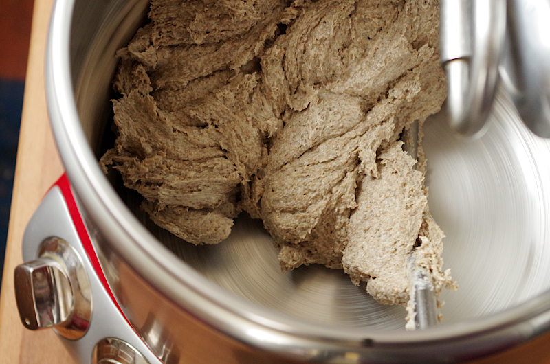 Я замешивала этот хлеб в тестомесе Ankarsrum с помощью крюка около 20 минут на второй скорости. Несмотря на то, считается, что ржаные долго месить не следует и что там нечего развивать (клейковины нет), длительный замес имеет смысл. Совсем недавно Сергей Кириллов в своем инстаграм поделился этим приемом, многие уже последовали ему примеру и остались очень довольны. Мы так сделали на мастер-классе в Харькове и испекли такой замечательных хлеб!