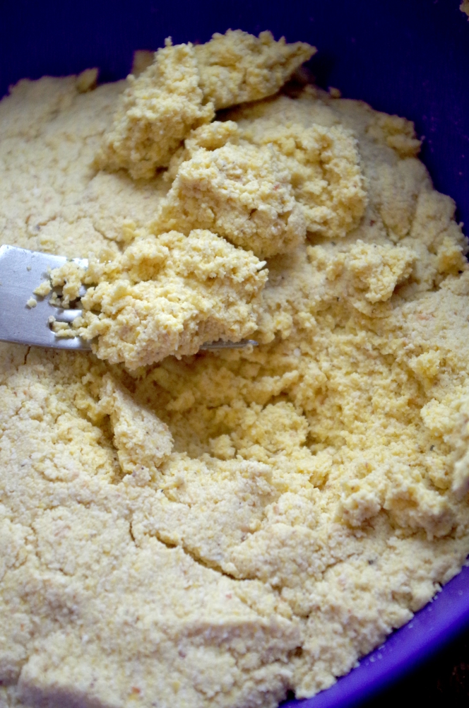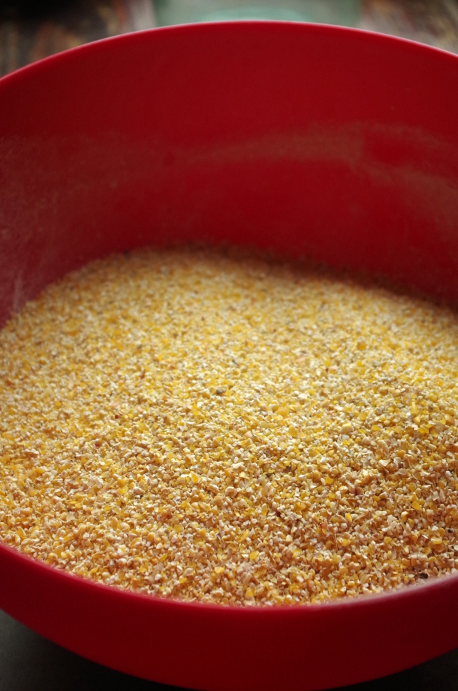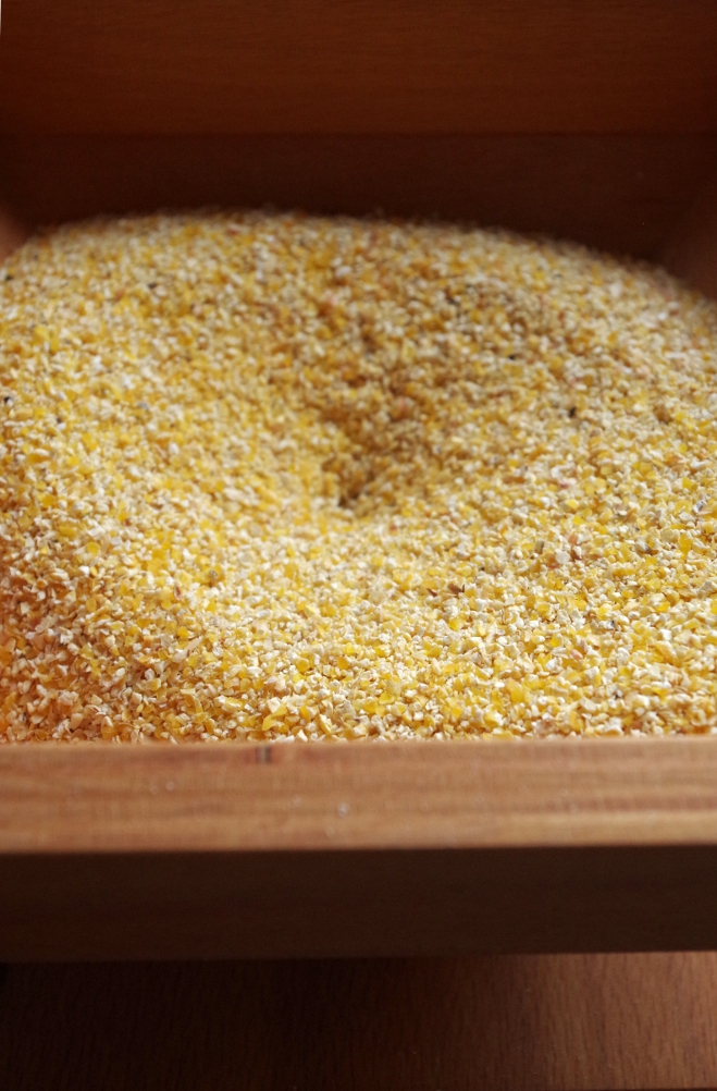 Кукурузной муки дома не оказалось, накануне она пала смертью храбрых в ожесточенных боях с молью, поэтому я смолола самую обычную кукурузную крупу в своей замечательной мельнице Hawos Queen1.