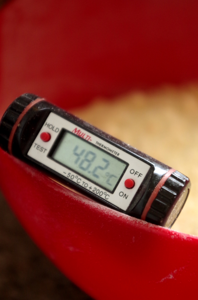 Теперь его нужно оставить в покое в тепле на 15 часов. Я поставила его в духовку с включенной лампочкой.