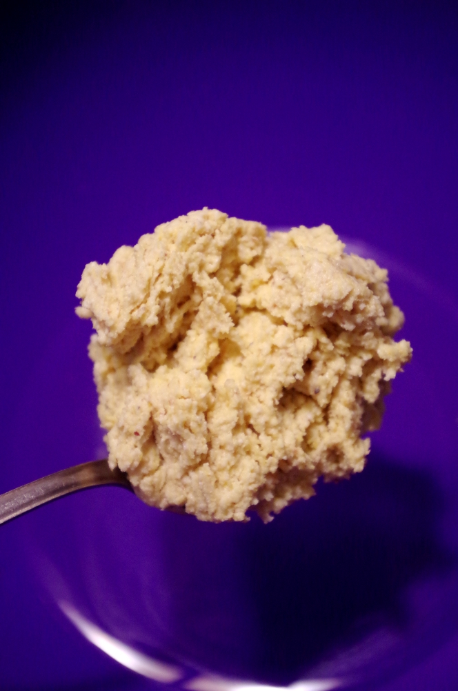 Должно получиться вот такое тесто, довольно густое, как мокрый песок.