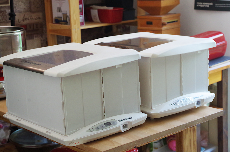 От старой версии, которой я давно уже пользуюсь, новый шкафчик отличается тем, что может разогреваться до 90°, в нем можно и тесто брожить/расстаивать, и делать квас, йогурты, сметану, топить молоко, плавить шоколад и даже сушить меренгу! А еще можно осахаривать заварку и томить зерно и крупу, делать каши.