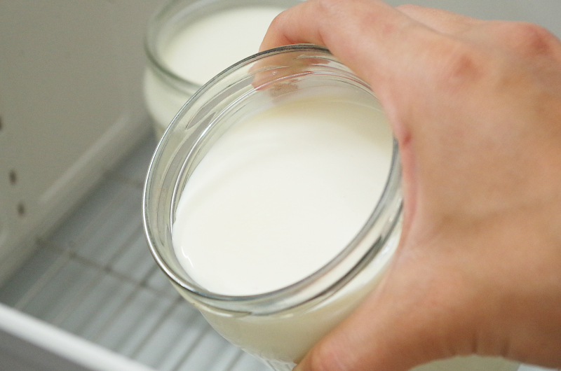 Йогурт переложила в банку, его стало еще меньше и он стал еще гуще))