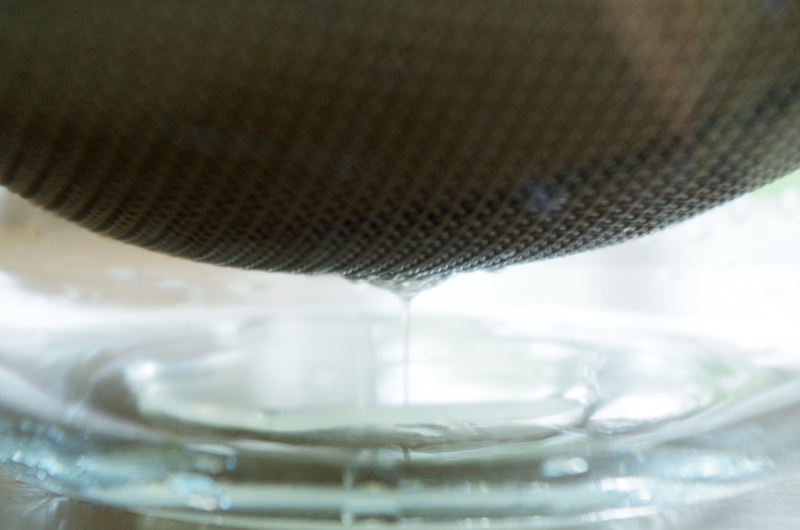 Следующй шаг - отвесить йогурт, чтоб стекла сыворотка и он стал гуще. Дуршлаг застелила чистым полотенцем, вылила йогурт, оставила на 3-4 часа, чтоб стекла сыворотка. Натекло около 200 мл. вкуснейшей слегка сладковатой сыворотки).