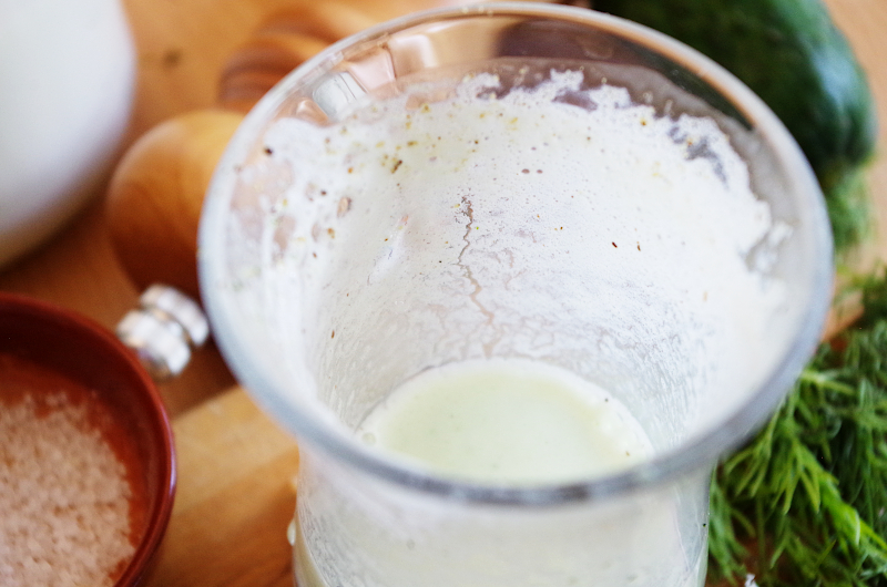 А вот вам отпадный пикантный вариант с огурцом, зеленью и чесноком! Все то же самое, что и раньше, только добавьте в блендер половину небольшого очищенного огурца (кусочками), несколько веточек укропа и маленький, пропущенный через пресс зубчик чеснока. Все хорошенько взбейте и тут же разлейте по стаканам, посыпьте свежемолотым черным перцем и подавайте. Это восторг!