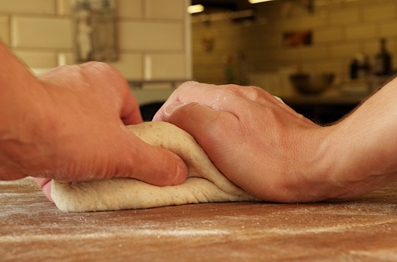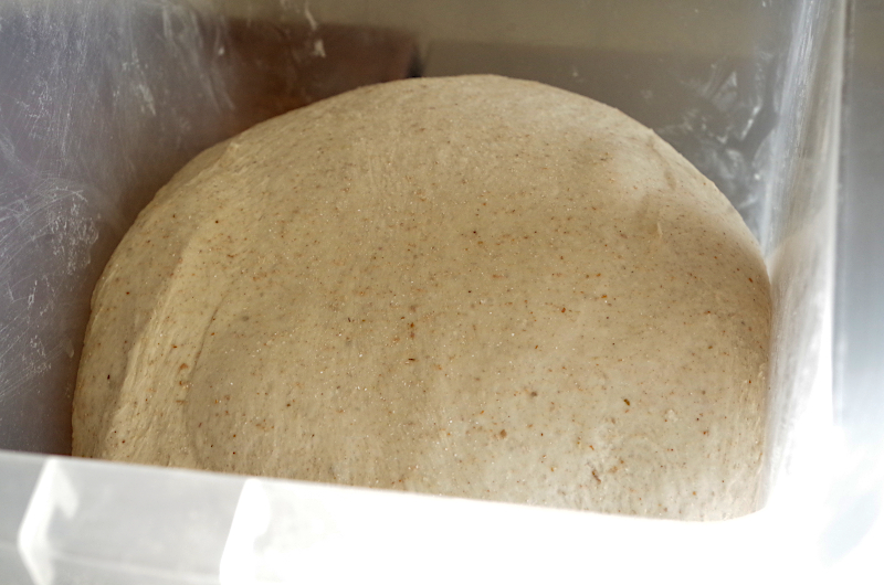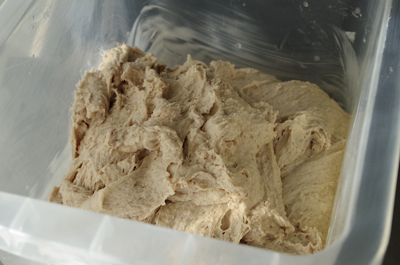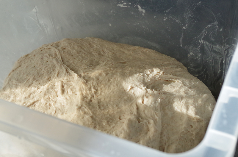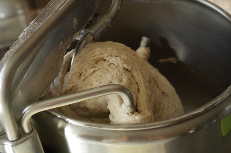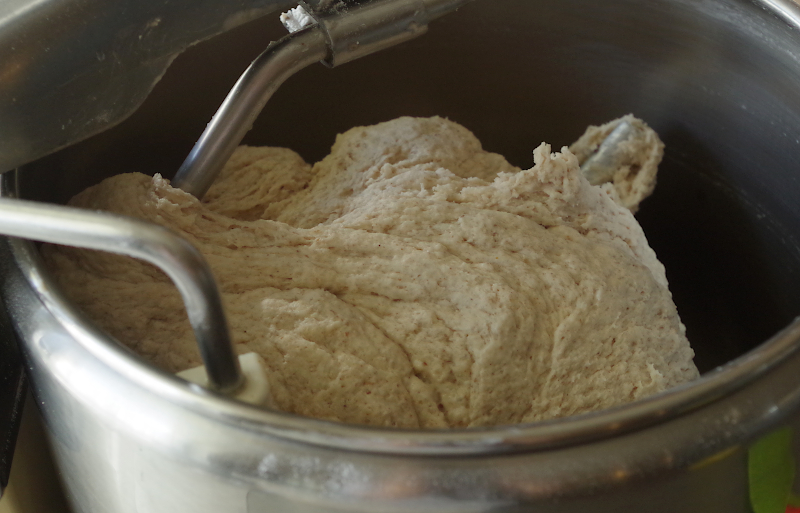 Если же у вас тестомес, рекомендации те же, только в время замеса иное. Для Ankarsrum это 15-20 минут на 2-2,5 скорости, если же спирального типа, 7-10 минут на второй. После замеса переложите тесто в смазанную маслом емкость, подверните края книзу, как бы округляя его, накройте пленкой, или крышкой и оставьте на ферментацию.