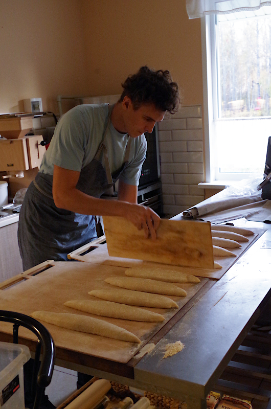 Гречневую муку для этих багетов мы мололи на большой мельнице Hawos Pegasus, которая стоит на кухне у наших друзей из усадьбы Ганка под Минском.