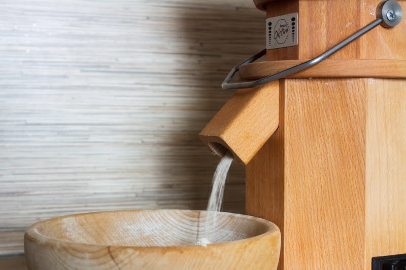 Если у вас есть домашняя мельница, сделайте свежую муку перед замесом. У меня очень компактная жерновая мельница из бука Hawos Oktini :)