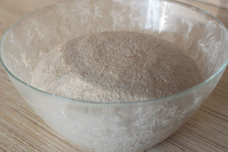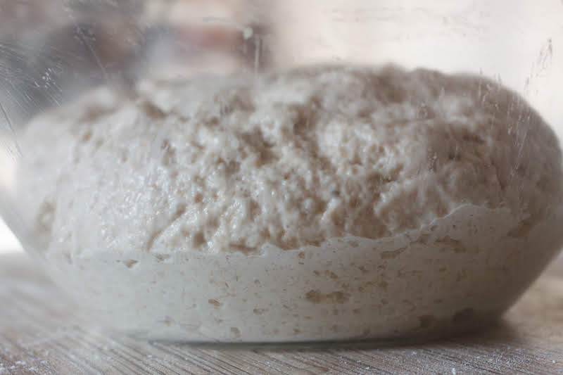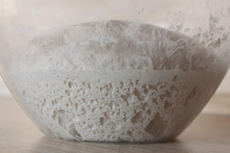 После внесения всех ингредиентов перемешиваем хорошенько тесто до однородности и оставляем примерно на два часа. Наша задача увидеть начало активности наших культур в виде появления на стенках посуды маленьких пузырей с воздухом, как знак того, что дрожжики принялись за дело.