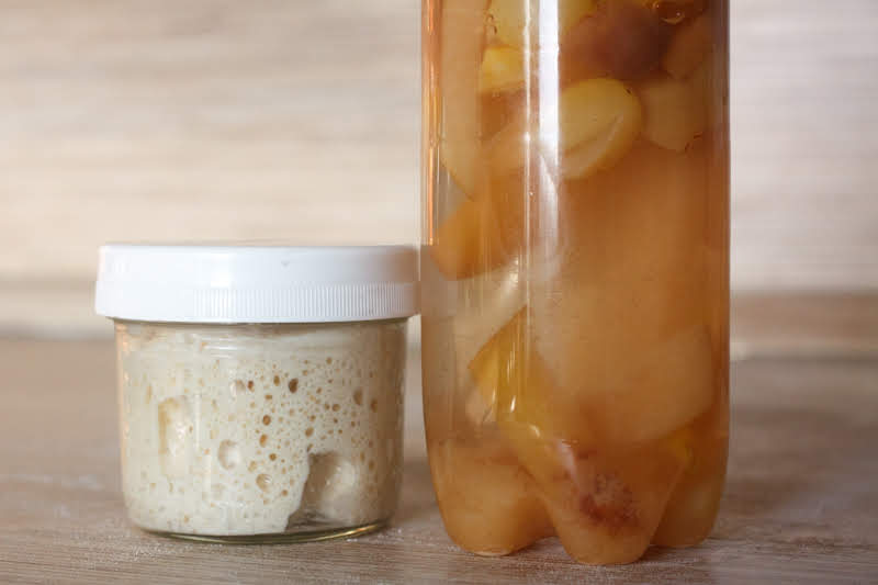 От смешивания всех ингредиентов и до перемещения теста в холодильник необходимо около двух часов, так что планируйте время время, особенно вечером ;) Второй немаловажный момент, касается температурных режимов. Поскольку сейчас холодает, а количество стартовых культур у нас малое, после смешивания желательная температура теста 22-25 градусов, иначе брожение сильно затянется и желаемый результат может не получиться (или получиться в других временных рамках). Поэтому, если у вас прохладно дома, или ингредиенты хранятся где то на балконе, прихожей, или просто они холодные, то используйте подогретую воду, до слегка теплой по ощущениям, чтобы вам она была комфорта (но не грейте фруктовые дрожжи), а тесто после смешивания оставьте в теплом месте, к примеру в духовке со включенной лампочкой и приоткрытой дверцу (или в расстоечном шкафчике, температура 25-27 град).