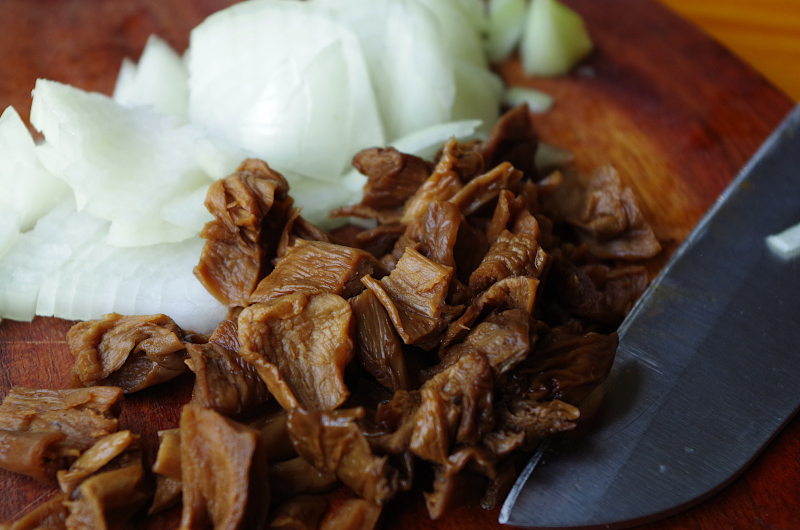 Отваренные сушеные грибы;