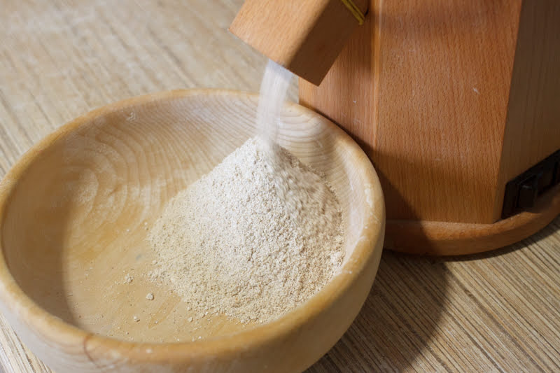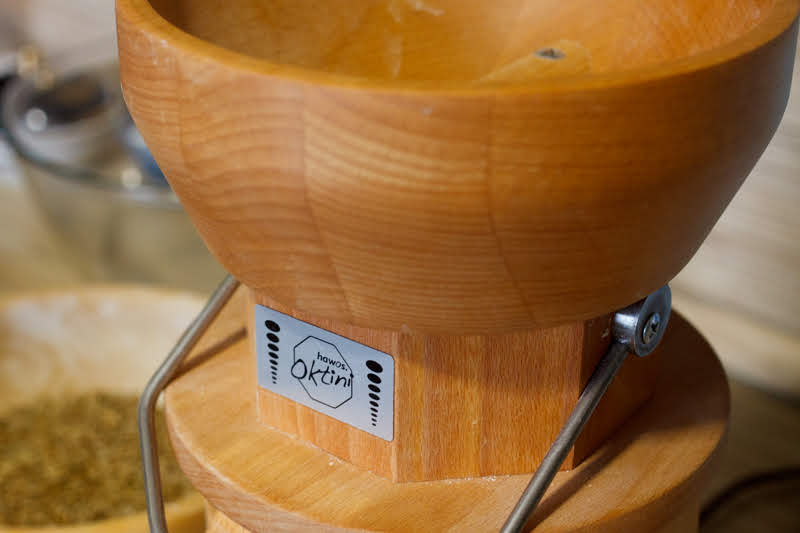 Накануне вечером подготавливаем закваску для опары и заливаем кипятком солод с семенами льна. Утром проверяем готовность закваски, если она созрела, то приступаем к дальнейшим шагам. Старайтесь, чтобы цельнозерновая мука у вас всегда была максимально свежей, каждый раз обращайте в магазине на это внимание. А самое идеальное решение этого вопроса - обзавестись своей домашней мельничкой (у меня это Hawos Oktini), которая обеспечит вас всегда самой свежей, тепленькой после жерновов, мукой.