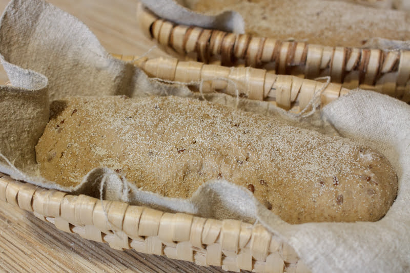 После чего, отправляем заготовки на расстойку в корзинки шфом вверх, которая составит 1:20-1:30. В это же время начинаем греть духовку до 230-240 градусов с камнем и колпаком, если используете. Если у вас нет камня, или колпака для выпечки, то можно начать греть за 40 минут до выпечки вместе с противнем. Это не заменит камня, но немного улучшит условия.