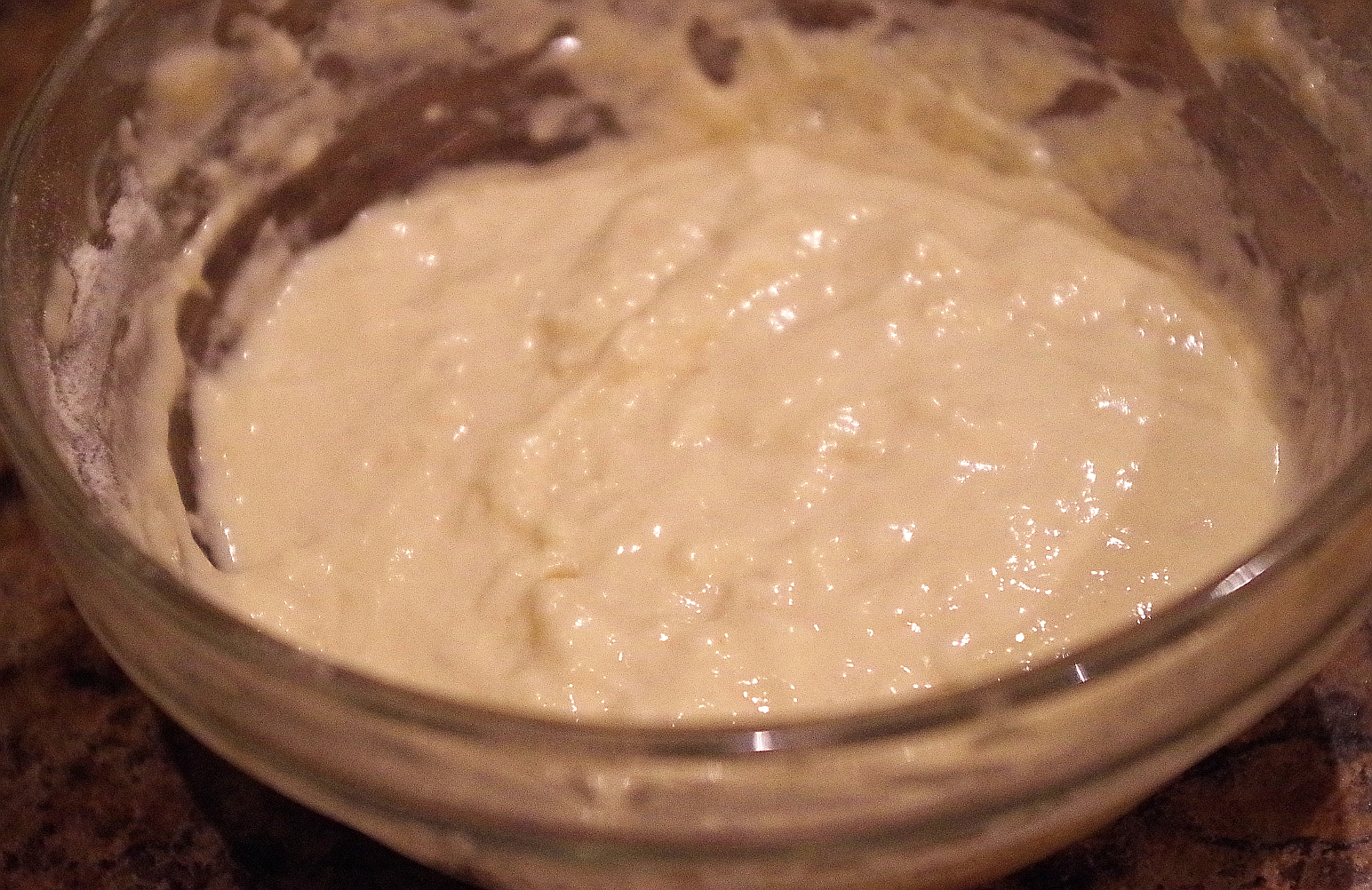 Вот для примера густая и жидкая закваска в начале и в конце брожения. Густая закваска только что смешанная: