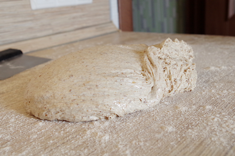 Брожение около 2,5 часов при 24-26° с одним складыванием через 40 минут.