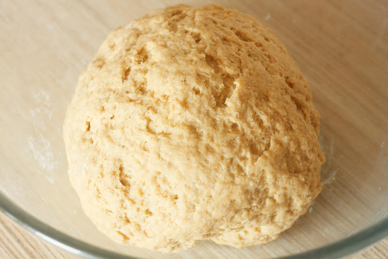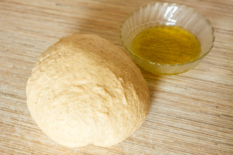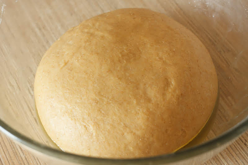 Сверните тесто в шар и переложите для брожения в прозрачную миску ,смазанную растительным маслом. Миску затяните пленкой, чтоб поверхности не высыхала.